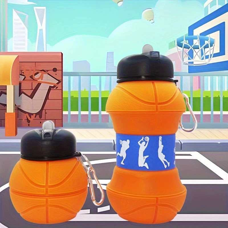 زجاجة مياه من السيليكون لكرة القدم/كرة السلة قابلة للطي، زجاجة مياه رياضية خارجية للأطفال/الطلاب. يدعم التخصيص الشامل
