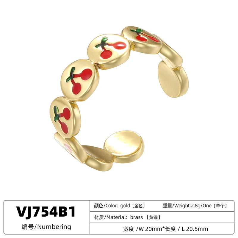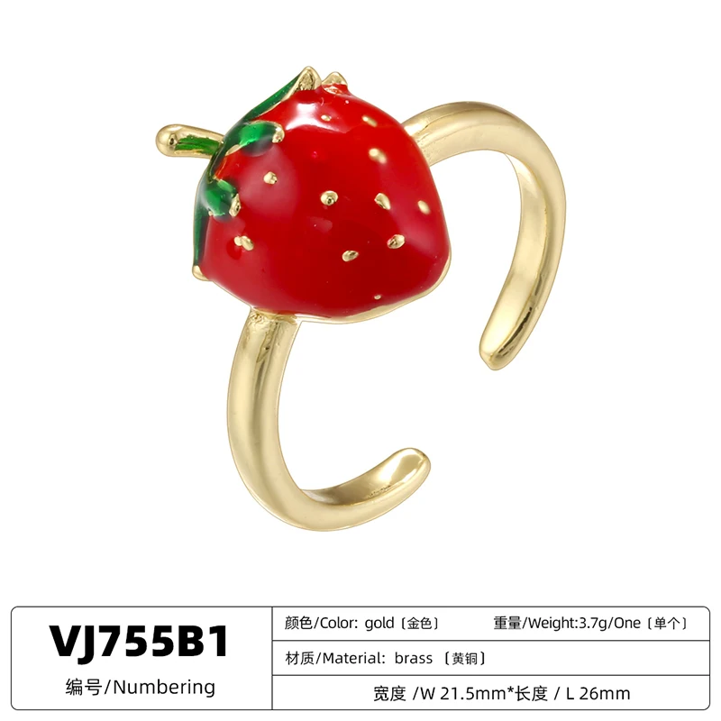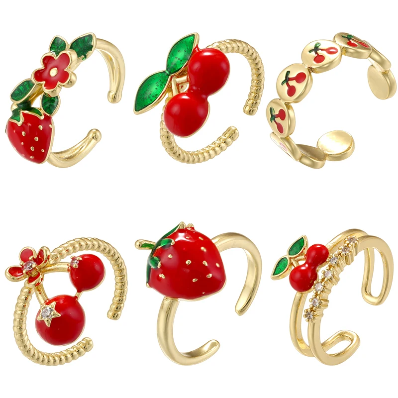 ZHUKOU بالمينا قطرة الزيت الكرز الأحمر الفراولة سلسلة حلقة حلوة ولطيفة السيدات قابل للتعديل حلقة مفتوحة 1 قطعة: VJ753-VJ758